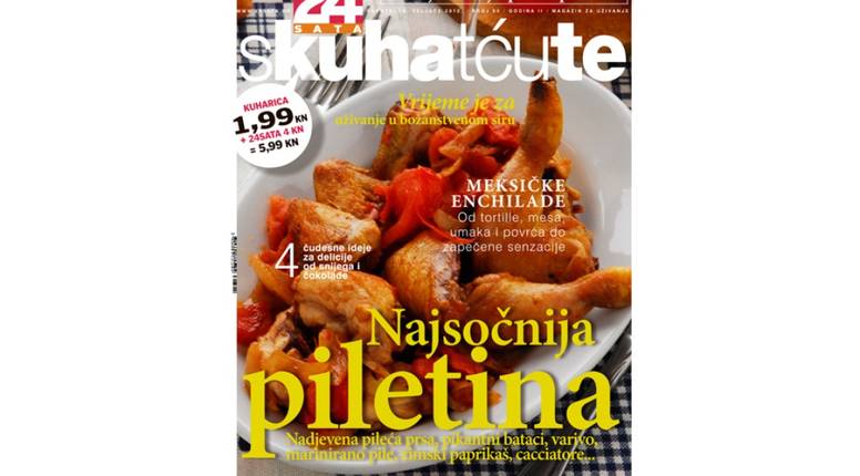 U subotu, 18.2. potražite svoj primjerak 24sata i kulnarski tjednik Skuhatćute u kojem vam donosimo prilog Kuharica sa 16 recepata za pripremu najsočnijih jela od piletine koje možete izrezivati i skupljati. Pripremite nadjevena pileća prsa, pikantni batke, variva, marinirano pile, zimski paprikaš, cacciatore i mnoga druga fenomenalna jela od piletine.