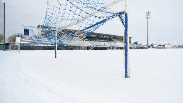 Stadion u Koprivnici u potpunosti je pod snijegom, a sreća je da je Slaven Belupo u ovom kolu igrao u gostima kod Vukovara u Gradskom vrtu