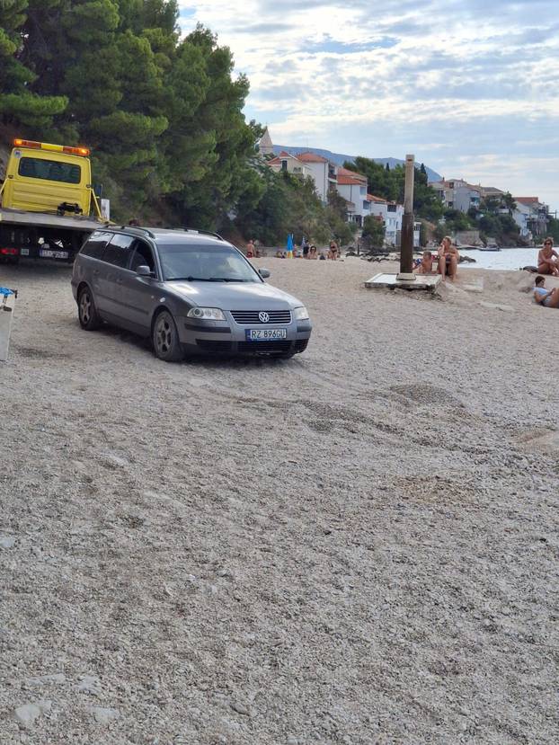 Bisera sa sezone nikad dosta, a ovaj put radi se o Poljaku koji je auto parkirao na plaži u Stobreču - pa zaglavio. Od čitatelja doznajemo da je autom stigao skoro do mora, a kad je shvatio da je zapeo, zvao je šlep službu.