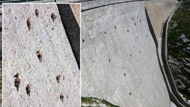 Brana Cingino na sjeveru Italije je visoka gotovo 50 metara, a koze su se uspele na različite visine kako bi oblizale kamenje koje im koristi zbog soli i minerala