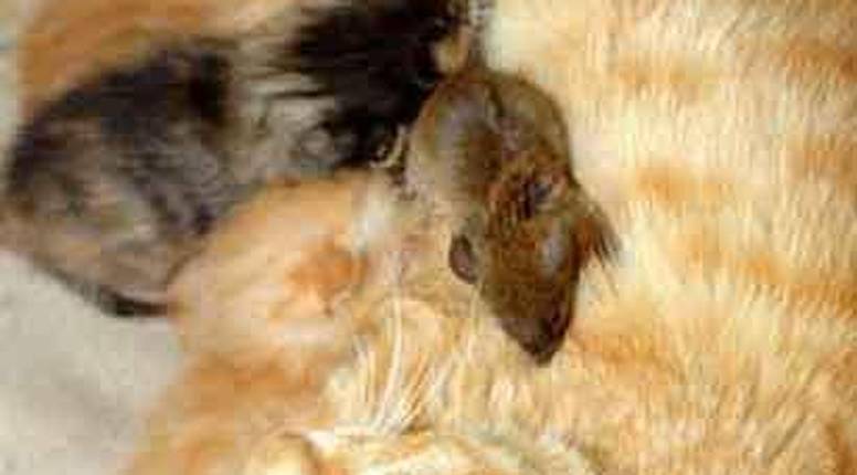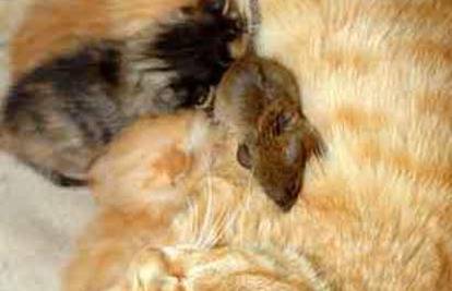 Zaposlenici jedne kineske trgovine uzeli su mačku kako bi hvatala miševe, no ona je umjesto toga jednog glodavca posvojila. Nakon što je okotila svoje mačiće, mačka je postala začuđujuće popustljiva te je miša prihvatila kao svojeg. Jednom su radnici izbacili posvojenog člana iz trgovine, međutim brižljiva pomajka je otišla po njega. Stručnjaci tvrde da je tako što moguće no izuzetno rijetko.
