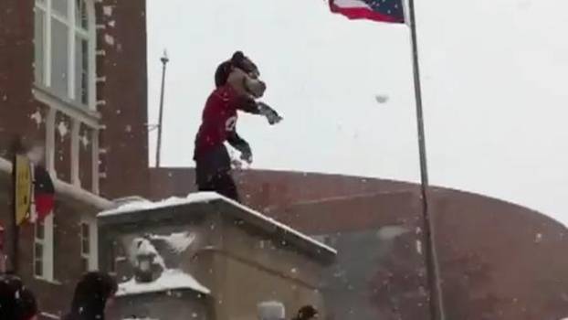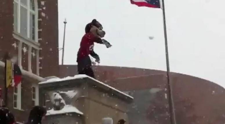 Maskota Cincinnati Bearcatsa završila je u policijskoj postaji jer je gađala publiku grudama i započela grudanje s protivničkim navijačima. Robert Garfield (22) je navijao na utakmici sveučilišta u Cincinnatiju. Policija mu je rekla da se umiri no nije ih poslušao te je i njih gađao grudama. Nakon upozorenja policija ga je oborila na tlo i odvela u postaju. Ispitali su ga, a na teren je izašla zamjenska maskota. Garfield je student dizajna, arhitekture i umjetnosti, piše Daily Mail.