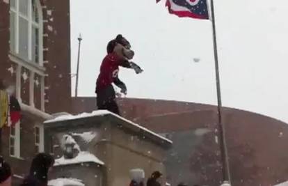 Komentari 2Robert Garfield, 22-godišnji student koji je nosio kostim maskote footballskog tima Bearcats, završio je u postaji. Započeo je grudanje s protivničkim navijačima