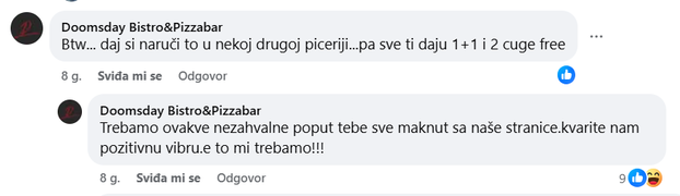 Pizzerija je otvorena prije više od pet godina, a na (ne)slavno su se proslavili nakon žestokih svađa s gostima na društvenim mrežama. Redovito su vrijeđali one s kojima se nisu slagali i koji su kritizirali kako rade.
