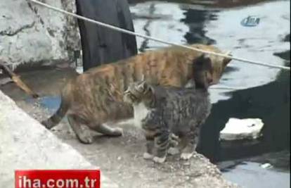 Očajna i bespomoćna, sirota je majka tužno mijaukala na molu. Srećom, na njeno su zapomaganje reagirali prolaznici koji su nazvali policiju. Pogledajte spašavanje...