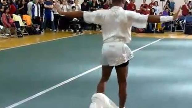 Keenan Stone iz Los Angelesa nastupio je na natjecanju u kineskim borilačkim vještinama. Na pola vježbe su mu skliznule hlače, ali ga nisu omele. Skinuo ih je