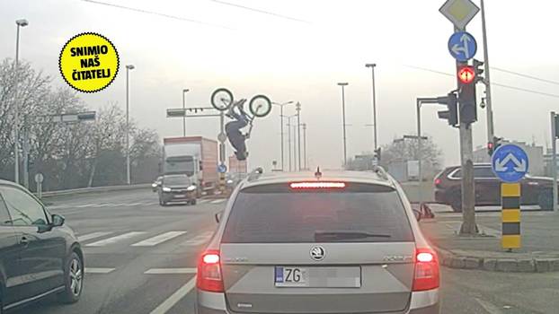 Komentari 33Na semaforu je bilo crveno. Bicikl je bio na podu. Taj dečko je izašao pred aute i podigao ruke. A onda je podigao bicikl, sjeo na njega i zaletio se. Nitko nije slutio kakav će spektakl prirediti, priča nam čitatelj koji je snimio video u petak na raskrižju Avenije Većeslava Holjevca i Ulice Savezne Republike Njemačke.