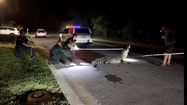 Veliki aligator blokirao je ovog tjedna cestu u Sarasoti, na Floridi, bilo je potrebno čak osam ljudi da ga uklone.