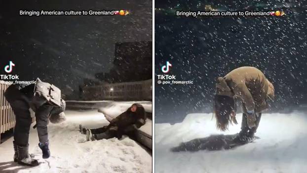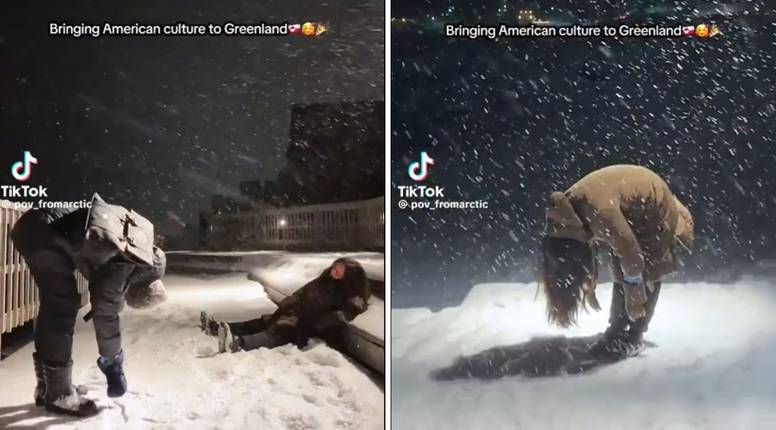 Mladić Christian iz glavnog grada Grenlanda Nuuka na TikToku je objavio snimku na kojoj s prijateljicom pokazuje kako bi 'izgledao dolazak američke kulture na Grenland', piše Daily Mail.