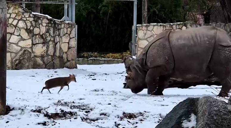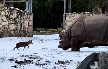 VIDEO Jelen od 17 kilograma protiv nosoroga od tonu i pol: Pogodite, tko se dao u bijeg?