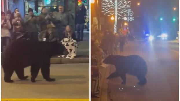 Videozapisi objavljeni na društvenim mrežama prikazuju zapanjene promatrače kako izvlače svoje mobitele dok je sisavac pretvarao očišćenu cestu u svoju pistu, ukrašenu blagdanskim svjetlima. Gomila uz cestu, koja je bila prazna osim zalutalog medvjeda, čula se kako viče dok je životinja mirno odšetala na parkiralište. “Čekamo božićnu paradu i pojavio se medvjed!!!” objavio je jedan uzbuđeni korisnik. No nisu se svi gledatelji zabavili zbog medvjeda “Djeda Pandže”.