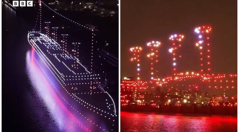 Zapanjujuća svjetlosna predstava s 950 dronova osvijetlila je luku u Belfastu, dramatično rekreirajući isplovljavanje i tragičnu sudbinu broda Titanica. Nesvakidašnji zračni prikaz emitiran je na BBC-ju kao dio kampanje "Made Of Here", kojom se slave gradovi i zajednice koji su oblikovali neke od najomiljenijih programa i likova poznate medijske kuće. Spektakl na nebu emitiran je u četvrtak, drugog travnja 2026. godine, točno u 20 sati, čime se obilježio precizan datum i vrijeme kada je Titanic 1912. godine isplovio iz Belfasta, prenosi Daily Mail.