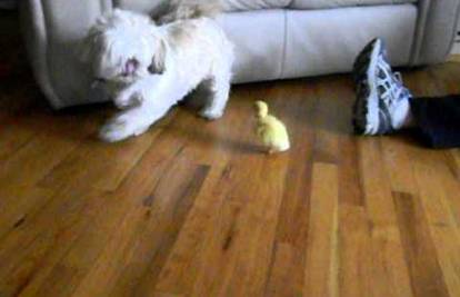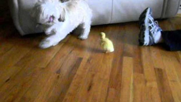 Patkica uporno naganja psića u nadi da će se sprijateljiti, no njemu se to uopće ne sviđa. Kasnije se malo privikao na novog sustanara, no i dalje nije oduševljen