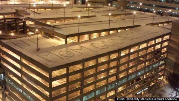 U ponedjeljak se svo osoblje u bolnici u američkom Chicagu aktiviralo u potrazi za osobom koja je na krovu garaže napisala: Bok, mama, Bog te blagoslovio.