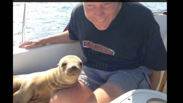J.R. Gilkinson plovio je s nećakom i prijateljima u oceanu oko američke Kalifornije kad je ugledao mladog morskog lava kako pliva oko njegovog broda.