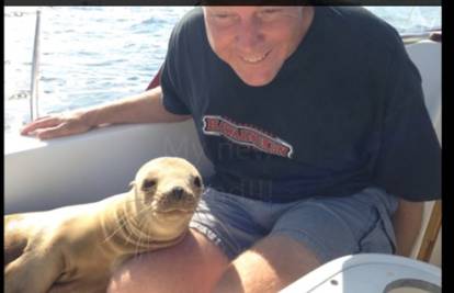 Morski lav se popeo na brod i odmorio u čovjekovom krilu