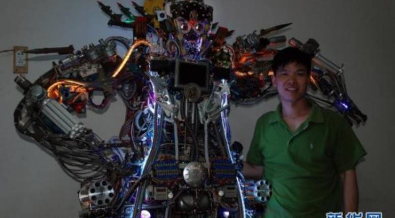 Tao Xiangli (37) u Kini je poznat kao genijalac koji stalno nešto gradi. Prije tri godine je sam napravio pravu podmornicu. Sada je predstavio svog robota kojeg je sastavio od 110 komada otpadnog materijala.