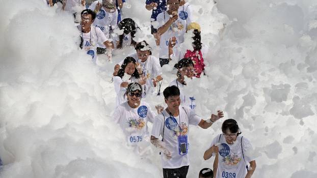 U kineskom gradu Yantai dosjetili su se načina kako da tijekom sunčane i vruće nedjelje ipak održe utrku na ulicama grada. A rješenje je odlično - niz cijelu ulicu našpricali su visoki 'zid' od pjene kroz koji natjecatelji protrče i odmah se osjećaju osvježenima. Da je trčanje kroz pjenu ugodnije od trčanja bez pjene dokazuju i osmjesi na licima trkača.