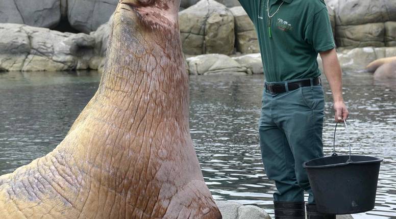 Morž Odin živi u zoološkom vrtu u Hamburgu. Nedavno je morao na pregled kod zubara, a kako bi ga oraspoložili prije inspekcije davali su mu ribu. S obzirom da morževi mogu težiti i do 1700 kilograma, on može pojesti jako puno.