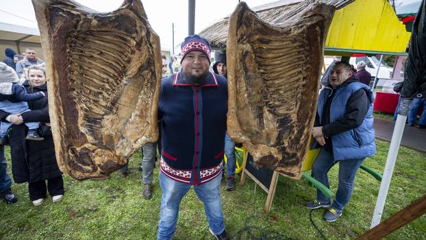 Teška čak 74,3 kilograma, ova impresivna slanina izazvala je pravo oduševljenje okupljenih – na pobjedničko postolje morala su je podići čak petorica odraslih muškaraca.
