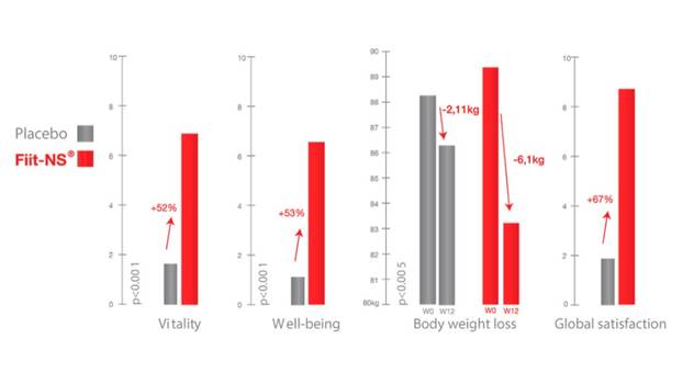 Iako sudionici u studiji nisu promijenili svoj životni stil, skupina koja je uzimala dodatak prehrani s formulom Fiit-NS®, postigla je slijedeće rezultate:
