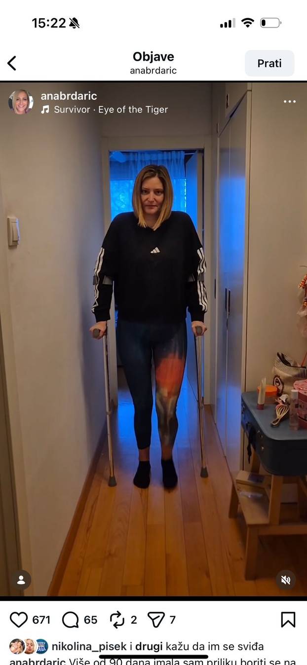 Stvorili smo nove samo naše rituale i ponovno se povezali. Ponovno smo naučili bezrezervno se voljeti i razumjeti. I to je nešto najvrednije što mi je život mogao dati. A noga - riješit će se, nadodala je.