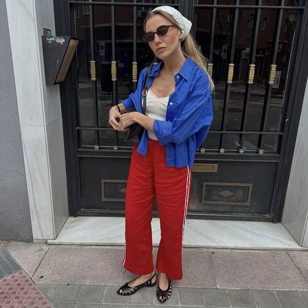 Jedna od boja za kojom se mnogi okreću definitivno je jarka crvena. Na zanimljiv način, uz plavu košulju i sandale, nosi je Maria iz Lisabona