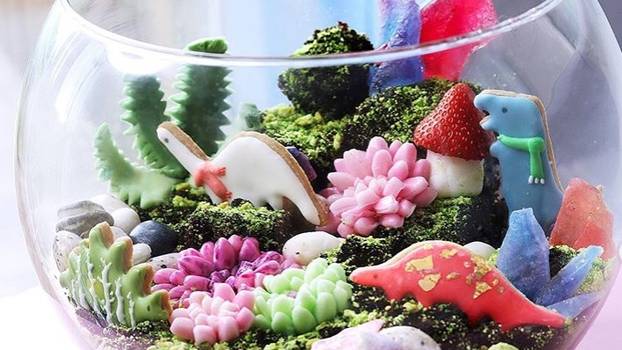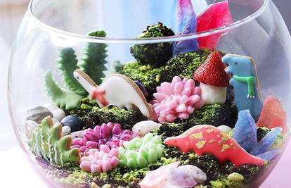 Komentari 0Ovu tortu zaista krasi predivan pejzaž koji neće veseliti samo djecu već i odrasle. U terarij možete staviti samo jestive biljke ili izraditi mala bića po vašem izboru, primjerice dinosaure. Ovi sastojci dovoljni su za 4-5 serviranja.