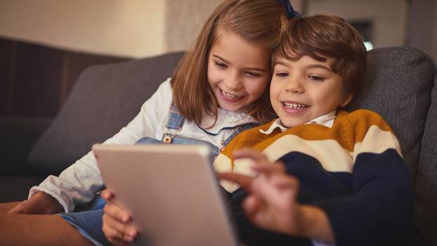 This app offers storybooks for any time of the day. Shot of a little boy and girl using a digital tablet at home.