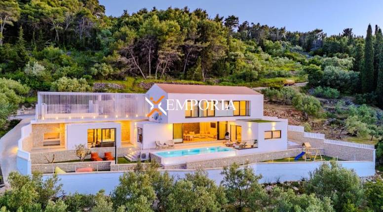 Udaljena je svega 515 m od mora i 490 m od centra mjesta. Radi se o novogradnji vrhunskog standarda, savršeno uklopljenoj u mediteransko okruženje s panoramskim pogledom na more. Cijena za ovaj raj je 3.000.0000 eura.