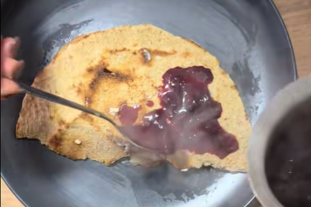 Priprema: Zobene pahuljice sameljite, pomiješajte s vodom i eritrolom dok ne dobijete gustu smjesu. Ispecite palačinku na nenauljenoj tavi 2-3 minute sa svake strane. Za namaz: pomiješajte jogurt s proteinom i borovnicama. Premažite palačinku i prelijte preljevom koji ste skuhali od borovnica, eritrola, cimeta i vode.