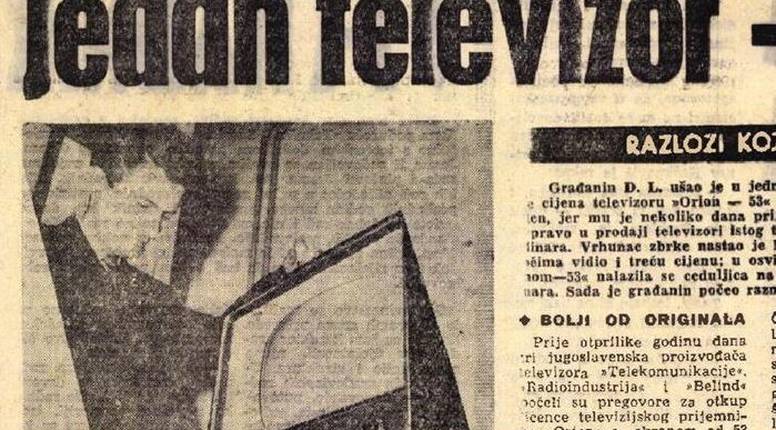 Jedan televizor, tri cijene, naslov je teksta u Večernjaku od 16. studenog 1960. godine, koji opisuje problem građanina D. L., koji je naumio kupiti televizor. Naime, tri jugoslavenska proizvođača televizora: Telekomunikacije, Radioindustrija i Belind, pokrenuli su pregovore za otkup licencije TV prijamnika Orion s ekranom od 53 cm. Malo nakon toga zagrebačka Radioindustrija krenula je u proizvodnju Oriona-53, po kvaliteti boljeg od mađarskog originala. Taj je prijamnik pušten u prodaju po cijeni od 160.700 dinara. Uskoro su stigli TV prijamnici proizvedeni u Beogradu i Ljubljani, po istoj cijeni. Međutim, pojavilo se i uvozno poduzeće, a s njim i kvalitetom slabiji originalni Orion, po cijeni od 167.250 dinara. A u međuvremenu se na tržištu pojavilo još jedno trgovačko poduzeće koje iste uvozne televizore prodaje po cijeni od 125.000. U tekstu se ističe da je pitanje kako je potonja cijena uopće formirana.