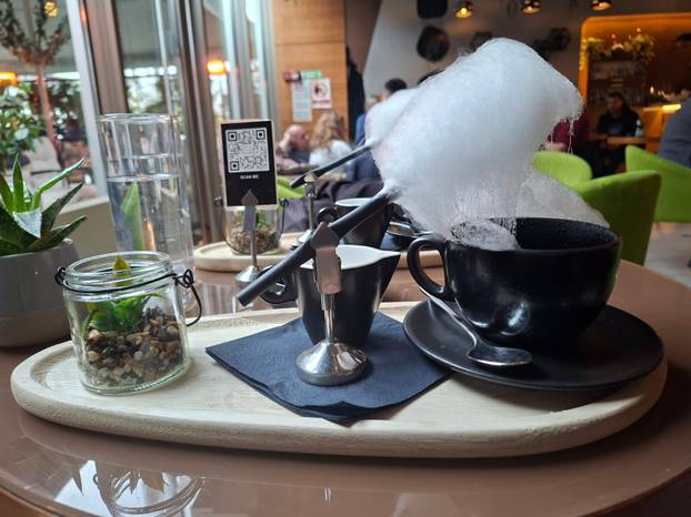 Dosta vam je svega i najradije biste otišli popiti kavu među oblake? E pa ne morate ići daleko. Sličan 'experience' možete doživjeti ako se uputite u Michi Garden – Cocktail and Caffe bar na Bundeku. Oni u ponudi imaju takozvanu 'candy coffe', odnosno kavu s oblakom od šećerne vune koja izgleda itekako 'instagramično'. Cijena joj je 4,90 eura, a imaju hladnu i toplu varijantu. Mi smo izabrali toplu i malo je reći da smo se oduševili njenim izgledom. Kada smo je naručili, konobar nas je upozorio da trebamo pričekati 10-15 minuta jer sami rade šećernu vunu, na što smo odmah pristali.