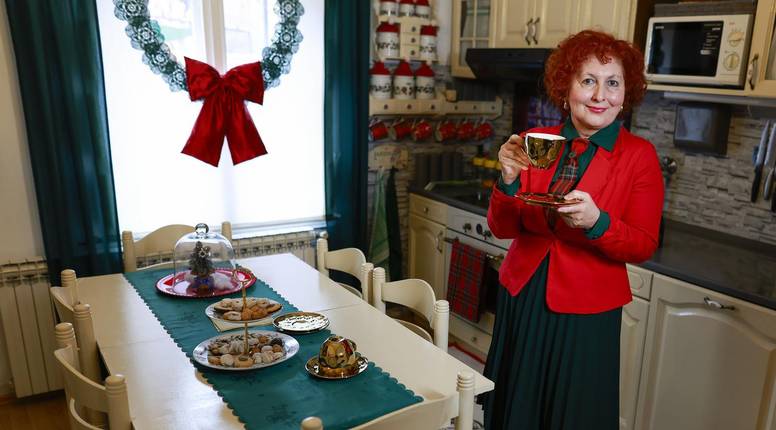 Ulazak u obiteljsku kuću Osječanke Snježane Seleš je kao da si u dva koraka zašao u božićnu bajku. Sve je u njoj uređeno baš u stilu Božića; svijeće na kaminu, borići ukrašeni unikatnim nakitom, zavjesa nalik adventskom vijencu s crvenom mašnom, starinski čajnik i zlatne šalice koje stoje na kraljevski zelenoj komodi, na stolu božićni kolačići s mirisom cimeta, na balkonu ukrašenom lampicama u "čupavim" dekama "sjede" snjegović i Djed Mraz, i sve je u tonu, sa stilom, ali baš bajkovito.