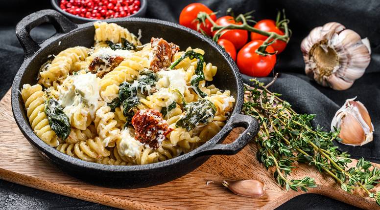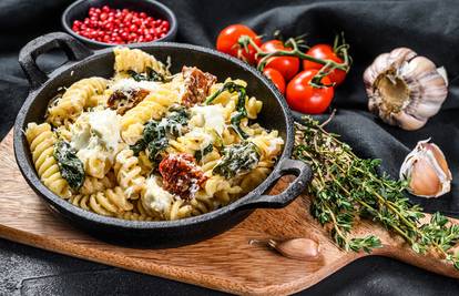 Za 30 minuta pripremite ukusnu tjesteninu s povrćem i fetom, idealnu za četiri osobe. Kombinacija špinata, sušenih rajčica i parmezana sigurno će vas oduševiti
