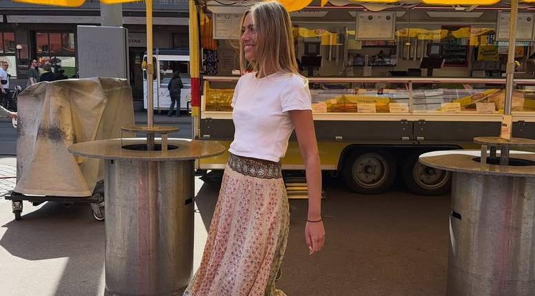 Duga suknja evocira dane hipija, a najčešće se pojavljuje u znaku floralnog motiva. Blanca iz Švicarske nosi je uz bazičnu bijelu majicu, koja stavlja upravo suknju u prvi plan