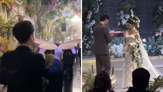 U viralnim videozapisima svjetleći leptir polako se spušta niz prolaz, obogaćuje prizor i donosi prstenje, često popraćen oduševljenim reakcijama gostiju i romantičnom pozadinskom glazbom.