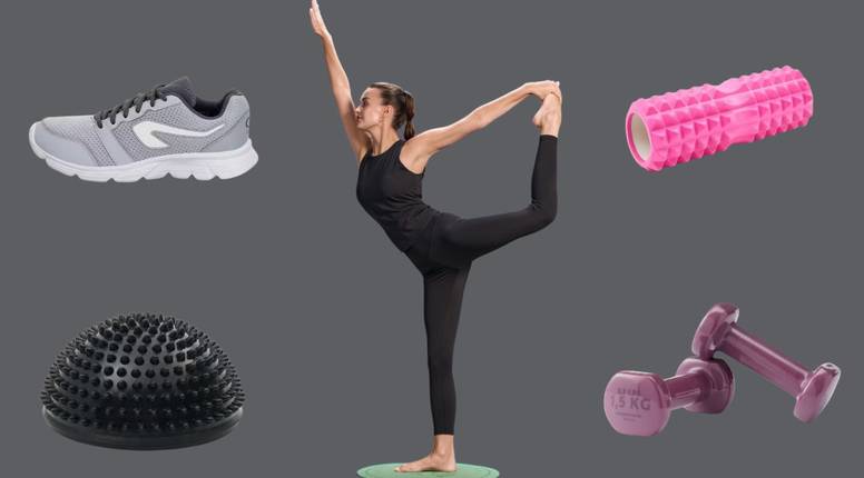Tu su utezi, bučice, roleri, masažeri za tijelo i lopte za vježbanje.