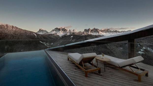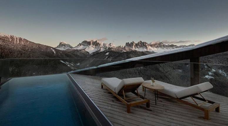Vanjski infinity bazen s pogledom na Dolomite, sauna okružena šumom, tihe prostorije za odmor i tretmani inspirirani prirodom stvaraju osjećaj potpune obnove, fizičke i mentalne. Vrijeme ovdje kao da usporava, a stres se topi bez napora.