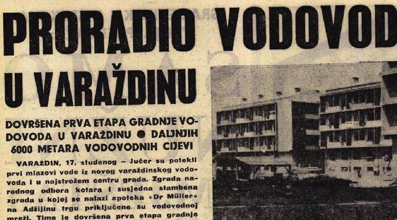 Dovršena je prva faza gradnje vodovoda u Varaždinu, piše Večernji list na današnji dan 1961. godine. Prvi mlazovi vode potekli su u prvim zgradama, a u ovoj je fazi postavljeno više od 5500 vodovodnih cijevi. U drugoj etapi dovršit će 12-katni vodotoranj, sa spremnikom za 300 kubičnih metara vode.