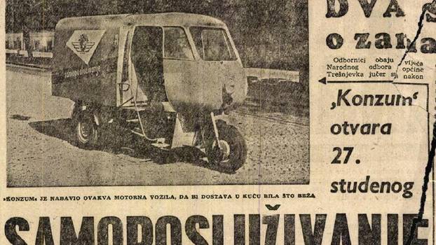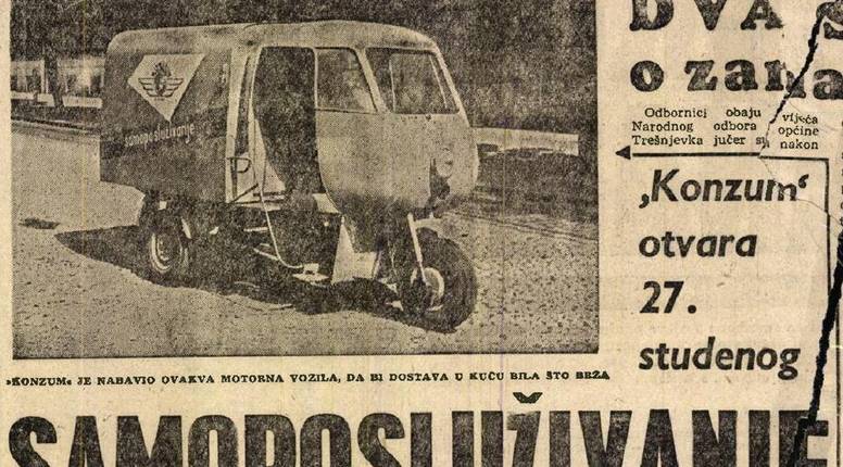 Konzum je nabavio moderna motorna vozila da dostava u kuću bude što brža, piše Večernji list na današnji dan 1959. godine u vijesti o otvaranju drugog samoposluživanja Konzuma u Zagrebu, koje je otvoreno na tadašnjem Trgu Jože Vlahovića (danas Trg hrvatskih velikana). Ovo samoposluživanje otvoreno je u prostoru u kojem je prije bilo sedam manjih lokala, ima čak 174 četvorna metra i veće je od prvog, u Ilici. U prostoru se može posluživati čak 150 kupaca odjedanput.