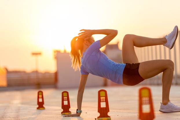 Dan 5: Trening snage s fokusom na trup i kardio. Kombinirajte vježbe za trbušne mišiće poput "bicikla" i podizanja nogu s 30 minuta trčanja ili brze vožnje biciklom.