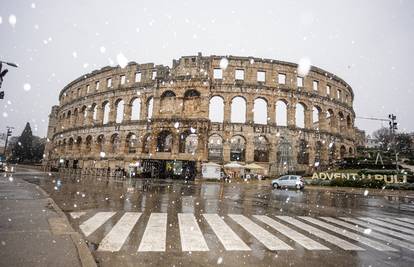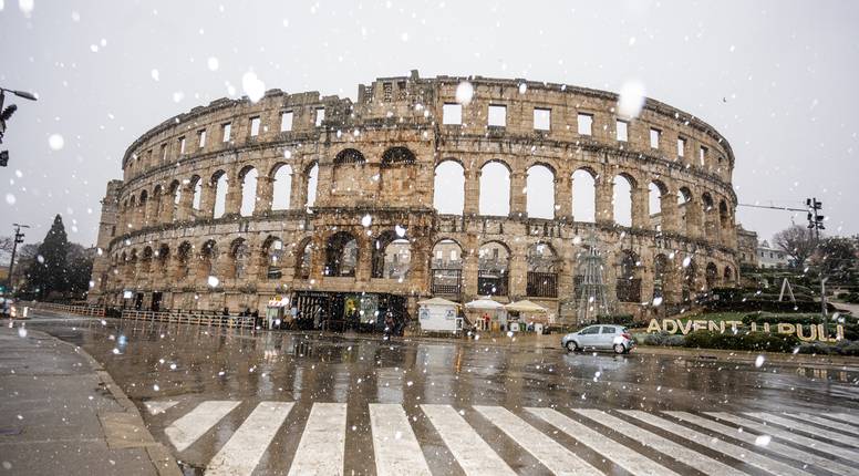 U Puli i okolici od ranih jutarnjih sati pada gusti snijeg, što je neuobičajen prizor za istarski kraj