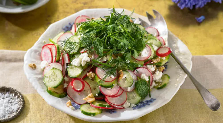 Sastojci: Krastavci, začinsko bilje, orah, feta sir, rotkvica