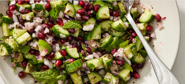 Sastojci: Krastavac, nar, menta, crveni luk, limetin sok
