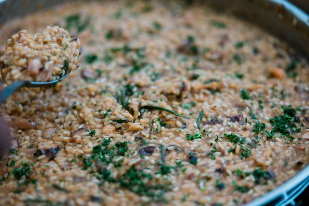 Od 17 sati započinje kulinarski spektakl uživo "Rižot za sve“. Svi će moći uživati u degustaciji rižota i lokalnih vina, a to je savršena prilika da osjetite okus Dalmacije i doživite pravi mediteranski način života. Druženje će biti uz 11 vrsta rižota te goste iz Italije i BiH.