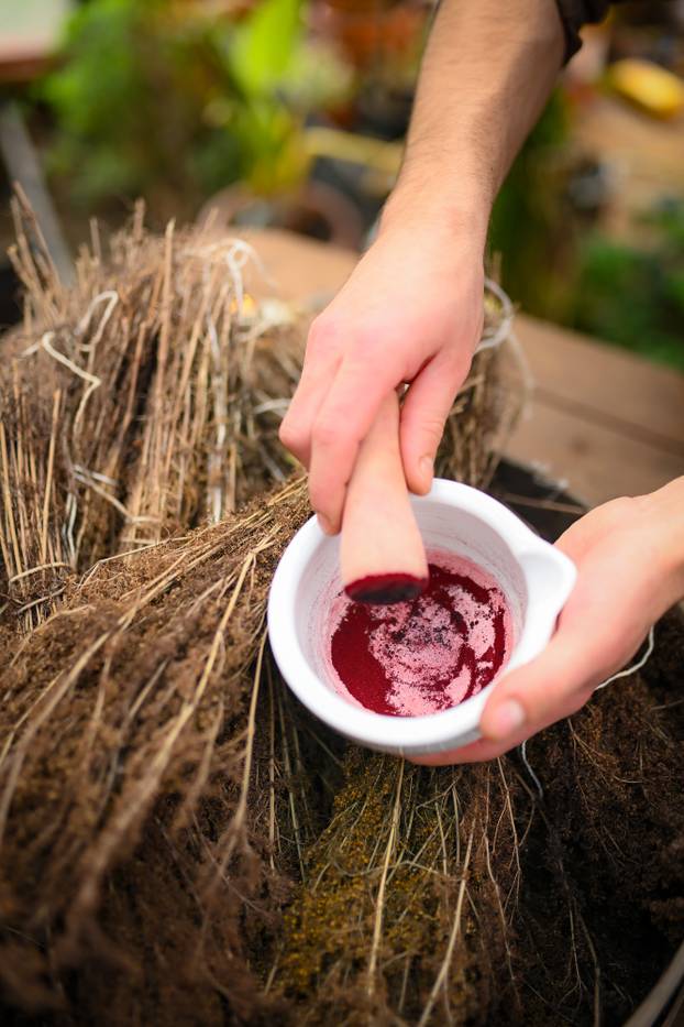 - Primjerice, zlatošipka ili kadifice stvaraju nježne žute tonove - dovoljno ih je kuhati u vodi, procijediti, dodati ocat i u toj tekućini skuhati jaja. Hrastove šiške, bogate taninima, daju tamne, gotovo crne nijanse, osobito uz dodatak željeza, dok ljuske crnog ili pitomog oraha stvaraju tople smeđe tonove. Za neobične boje može poslužiti i crni grah, koji uz dodatak aluma daje ljubičaste nijanse, a kore nara pružaju prirodnu narančastu. Posebno intenzivnu crvenu boju daje košenila, tradicionalno prirodno bojilo koje se koristi stoljećima - objašnjava nam ovaj mladi kreativac koji u svojem ateljeu održava prirodne radionice bojenja, ne samo jaja, nego i pločica te ostalih tkanina, ali i vrtlarenja te sakupljanja biljaka u prirodi od kojih polaznike uči pripremati svoj prah i pigmente.