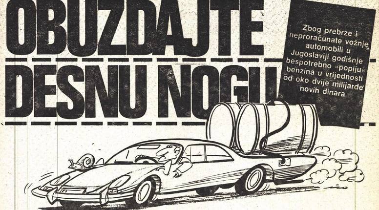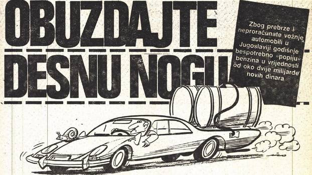 Obuzdajte desnu nogu - naslov je teksta u Večernjem listu na današnji dan 1973. godine, u kojemu se ističe da se mnogi vozači počinju zabrinjavati zbog sve viših cijena benzina. Troškovi goriva nekad su imali beznačajan udio u ukupnim troškovima održavanja vozila, no danas benzin ozbiljnije gricka dinar. No mnogo je značajnije smanjiti potrošnju nafte, produžiti joj, da tako kažemo, život, a tu ima dovoljno manevarskog prostora, piše novinar i upozorava: “Automobili u Jugoslaviji godišnje bespotrebno popiju benzina u vrijednosti od oko dvije milijarde novih dinara!”.