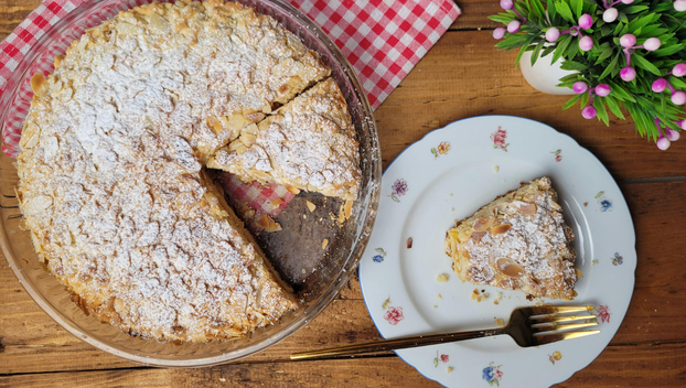 Umutite jaja i šećer, dodajte otopljeni maslac, limunovu koricu i sok. Umiješajte bademe i brašno. Pecite 30 minuta na 170 °C. Poslužite uz svježe bobičasto voće.