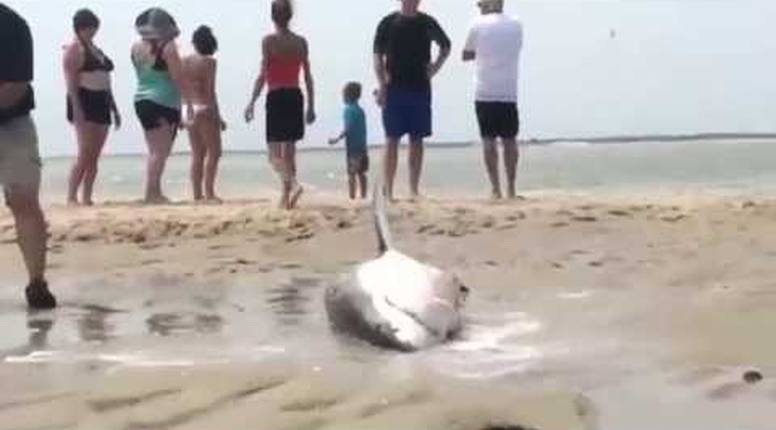 Nakon što se voda povukla morski pas ostao je nasukan na plaži u u Massachusettsu.